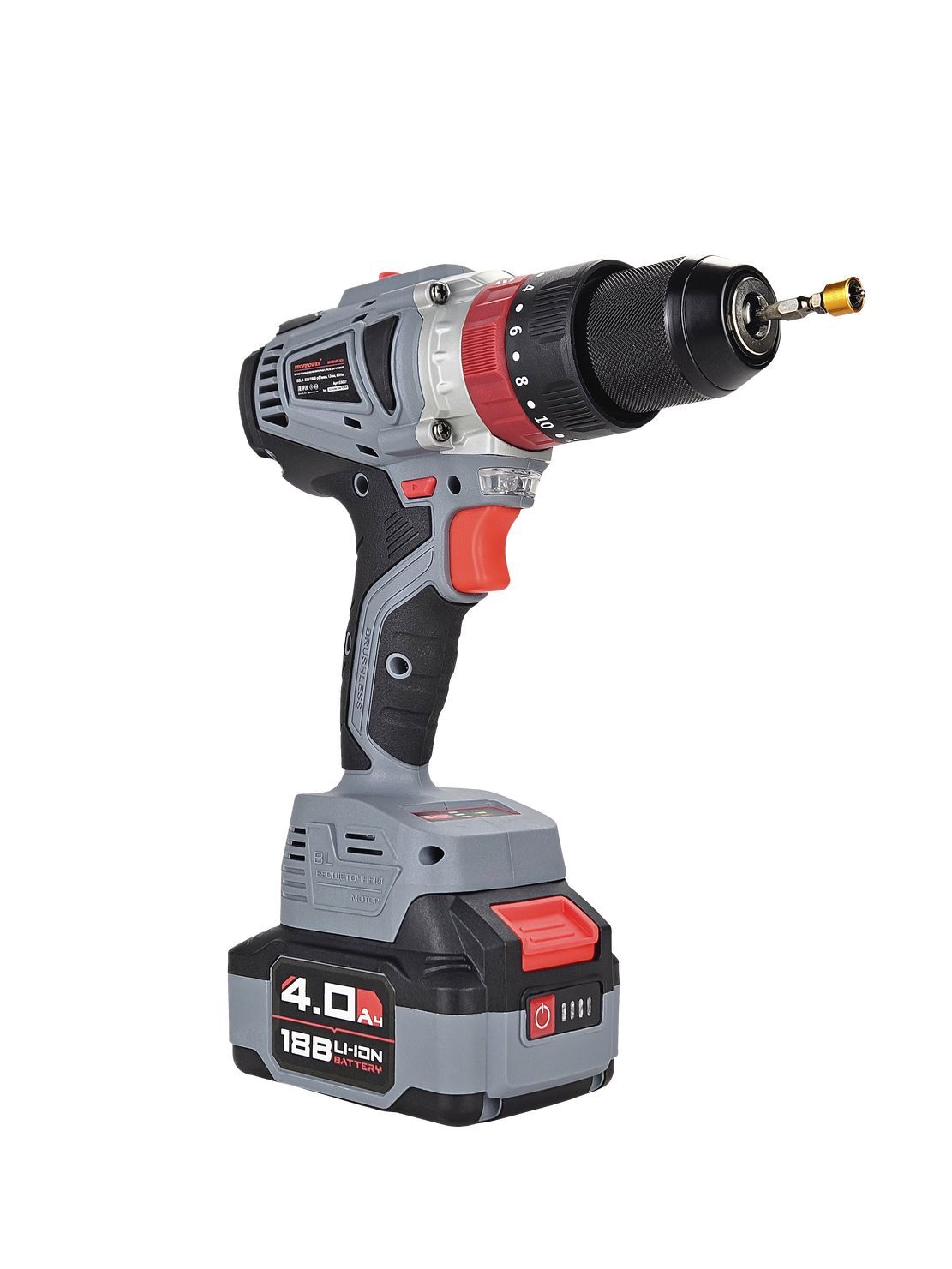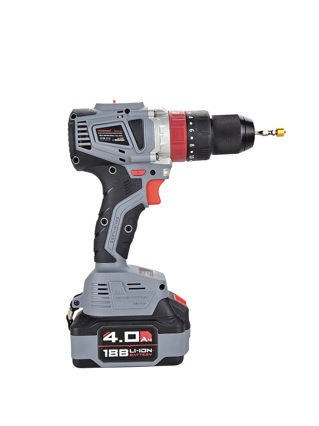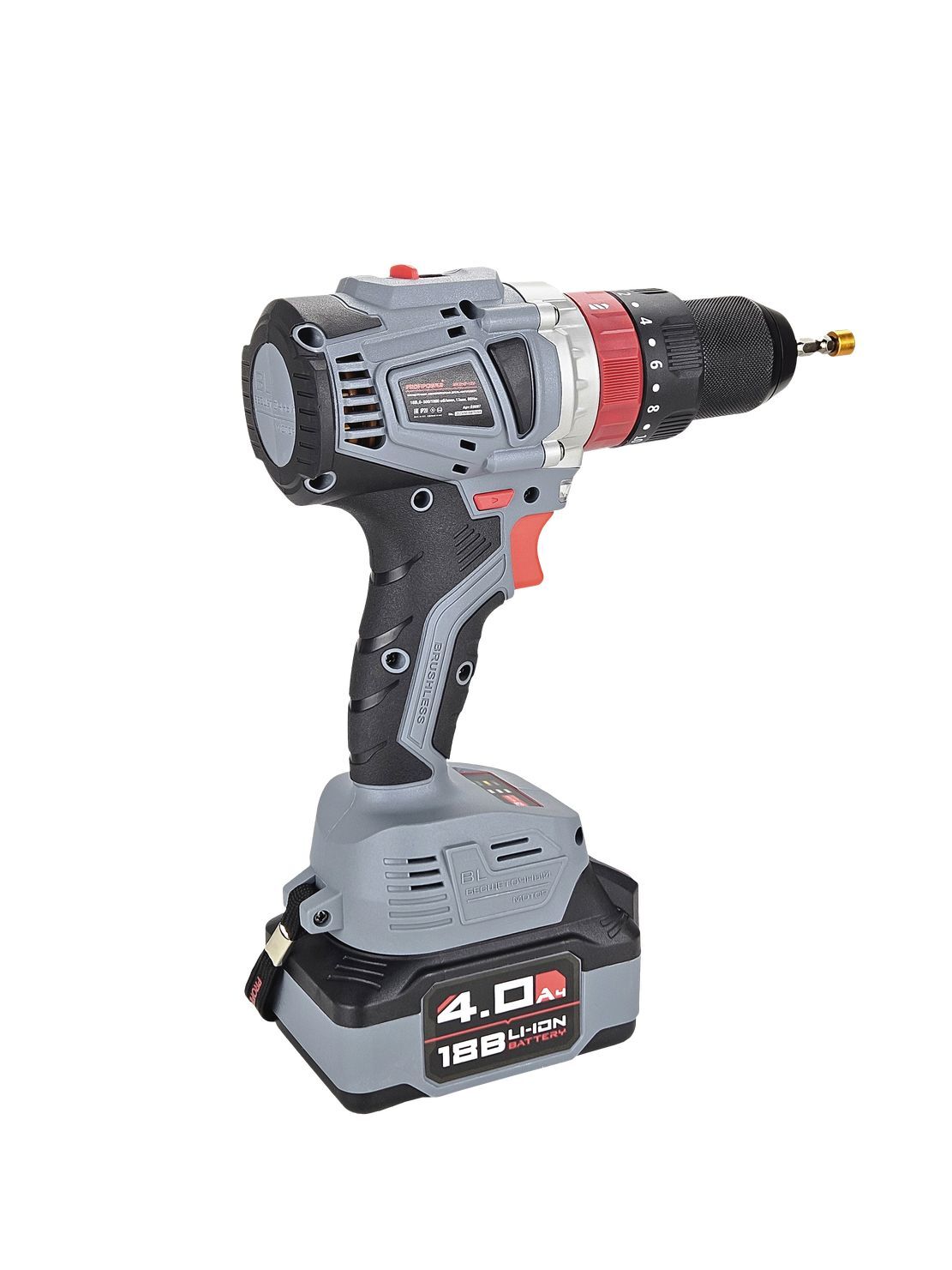 Инструмент состоит из бесщеточного электродвигателя, редуктора, помещенного в полимерный корпус, снабжен патроном для крепления оснастки. Управление производится с помощью переключателя режимов, переключателя направлений вращения, регулятора скорости вращения и триггерной клавиши выключателя.