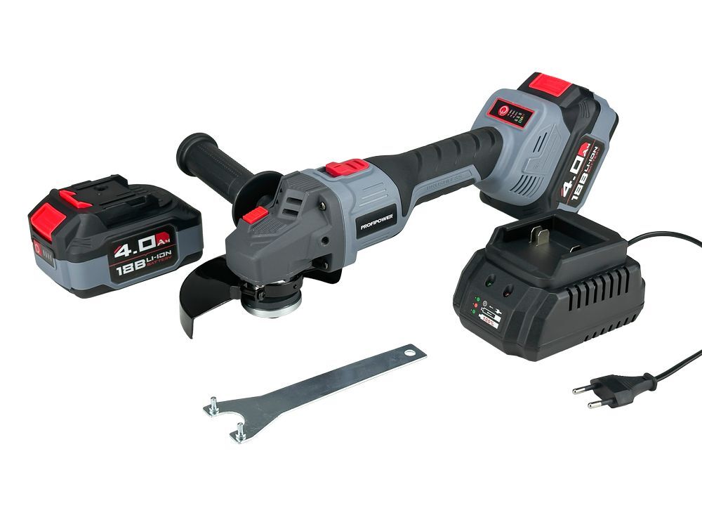 Суперкомплект: углошлифовальная машина, два аккумулятора 4000 mAh серии MK, быстрое зарядное устройство, ключ, дополнительная рукоятка, полимерный кейс.