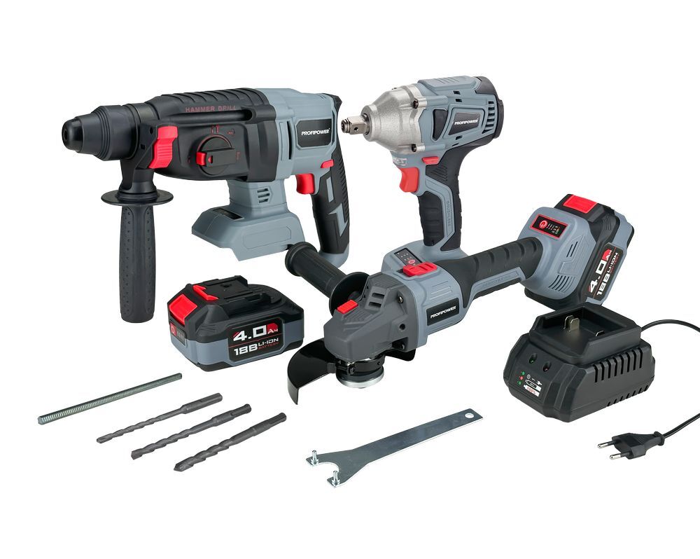 Аккумуляторный бесщеточный набор PROFIPOWER ProfiSet-3E18 — это универсальное решение для профессионалов и домашних мастеров, которым необходимы надёжные и мощные инструменты для широкого спектра задач. В комплект входят три востребованных устройства: дрель-шуруповерт, углошлифовальная машина и перфоратор, что делает этот набор идеальным для ремонта, строительства и монтажных работ.