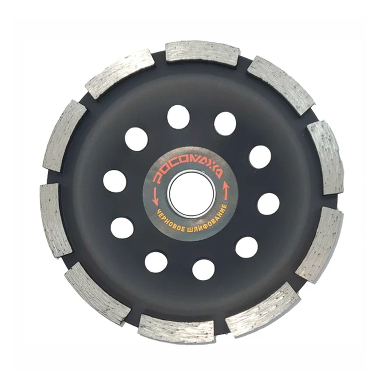 Чашка обладает высокой скоростью обработки поверхности, которая достигается за счет большого содержания алмазной крошки в сегменте. Ресурс двухрядной чашки в два раза больше, чем ресурс однорядной.