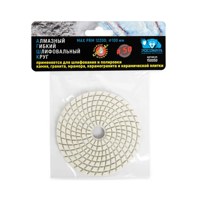 Круг алмазный гибкий росомаха 100 мм зерно предназначен для мокрой полировки и шлифовки поверхностей любых видов натурального и искусственного камня, гранита, мрамора, керамогранита и керамической плитки.