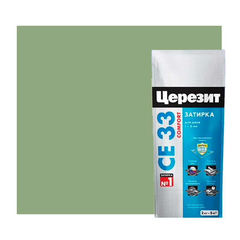 Затирка Церезит №73 СЕ 33, оливковая, 2 кг 48611 2092530 - цветной состав на цементной основе предназначен для заполнения швов керамических и каменных облицовок, устроенных на недеформирующихся основаниях (таких, как бетон, цементные стяжки и штукатурки), на полах и стенах, внутри и снаружи зданий, при ширине шва до 6 мм. Допускается использование для затирки швов в отделке бассейнов внутри помещений.