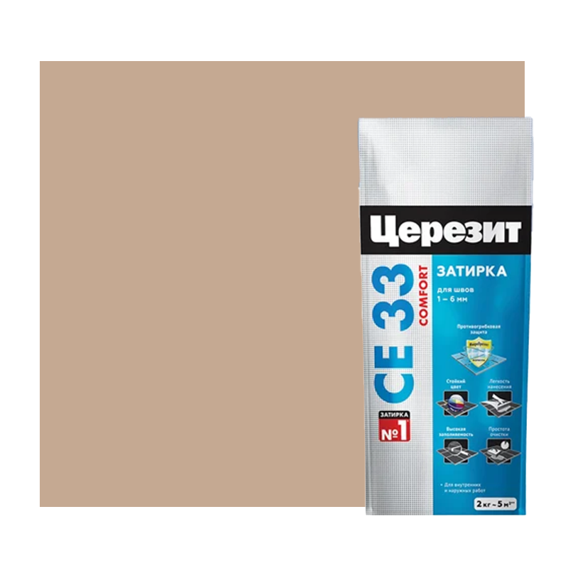 Затирка Церезит Comfort СE 33 сиена №47 фольга 2 кг 1/12 48603 2092752 - цветной состав на цементной основе предназначен для заполнения швов керамических и каменных облицовок, устроенных на недеформирующихся основаниях (таких, как бетон, цементные стяжки и штукатурки), на полах и стенах, внутри и снаружи зданий, при ширине шва до 6 мм. Допускается использование для затирки швов в отделке бассейнов внутри помещений.