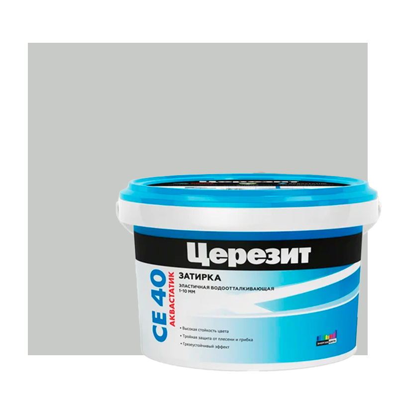 Затирка Церезит Aquastatic СE 40 серебристо-серая №04 ведро 2 кг 1/12 1956409 предназначена для заполнения швов облицовок из керамических, каменных (в том числе мраморных) и стеклянных (кроме зеркальных) плиток на полах, стенах внутри и снаружи зданий, при ширине шва до 10 мм.