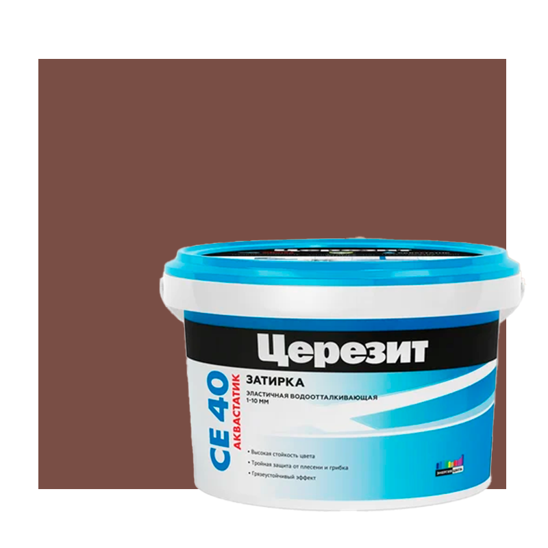 Затирка Церезит №58 Aquastatic СЕ 40 Темно-коричневая 2 кг 1/12 1046233 предназначена для заполнения швов облицовок из керамических, каменных (в том числе мраморных) и стеклянных (кроме зеркальных) плиток на полах, стенах внутри и снаружи зданий, при ширине шва до 10 мм.