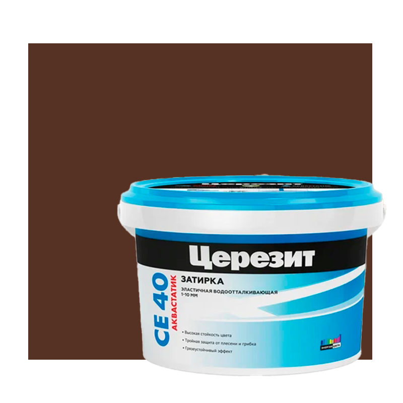 Затирка Церезит Aquastatic СE 40 темный шоколад №60 ведро 2 кг 1/12 48088 2092942 предназначена для заполнения швов облицовок из керамических, каменных (в том числе мраморных) и стеклянных (кроме зеркальных) плиток на полах, стенах внутри и снаружи зданий, при ширине шва до 10 мм.