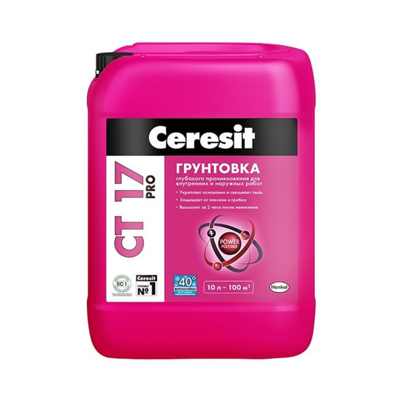 Грунтовка Ceresit CT 17 PRO морозостойкая предназначена для обработки поверхностей перед нанесением штукатурных и напольных смесей, плиточных клеев и т.д.