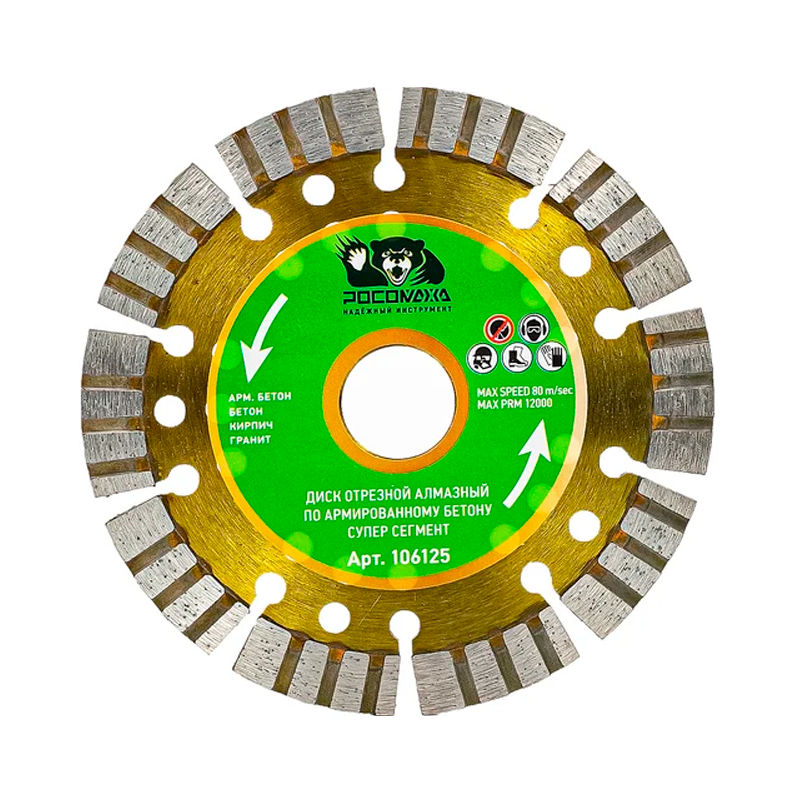 Диск отрезной алмазный по арм.бетону СУПЕР СЕГМЕНТ 230*2,8 мм "РОСОМАХА" (106230)