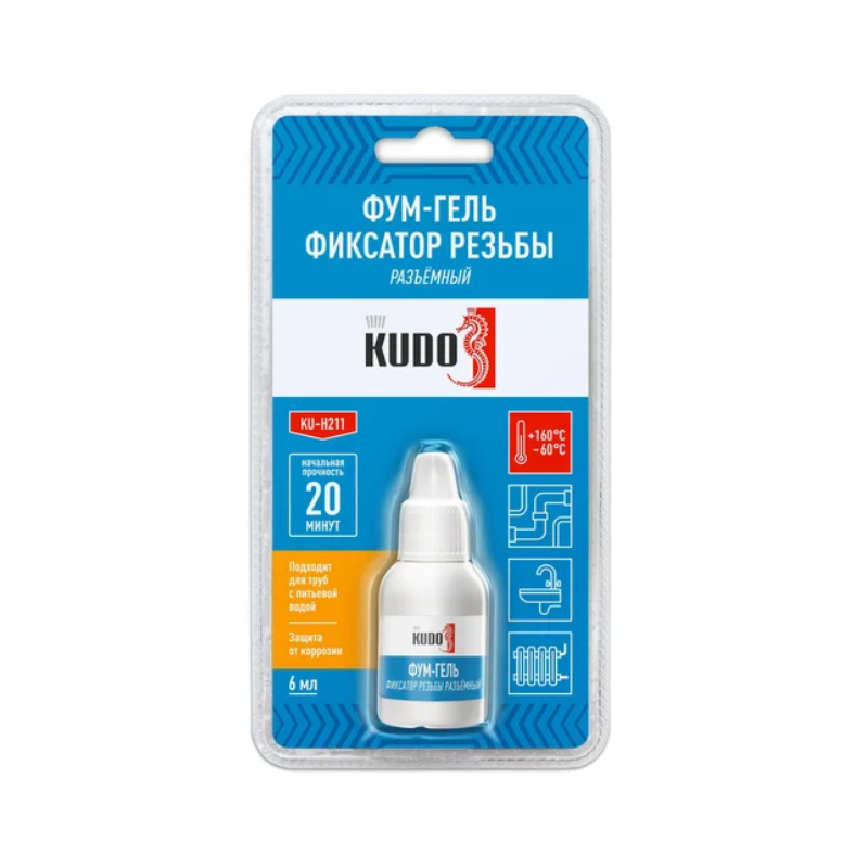 Защищает резьбу от коррозии. Фиксатор резьбы KUDO® KU-H211 устойчив к воздействию антифриза, бензина и других технических жидкостей.