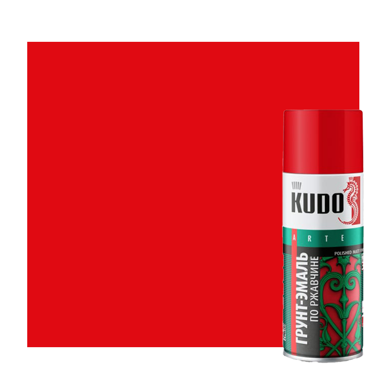 Грунт-эмаль по ржавчине матовая в баллончике KUDO RAL 3020 красная KU-313020 предназначена для окрашивания изделий из сплавов чёрных металлов, которые подвержены коррозии и уже заржавели. Продукт сочетает в себе свойства нейтрализатора коррозии, грунта и декоративной эмали, что позволяет значительно сократить время для получения покрытия.