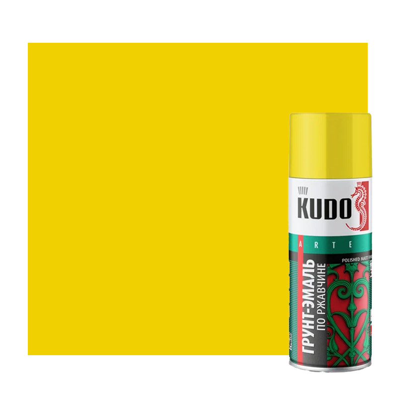 Грунт-эмаль аэрозоль по ржавчине KUDO желтая, 520 мл, RAL 1018 KU-311018 предназначена для окрашивания изделий из сплавов чёрных металлов, которые подвержены коррозии и уже заржавели. Продукт сочетает в себе свойства нейтрализатора коррозии, грунта и декоративной эмали, что позволяет значительно сократить время для получения покрытия.