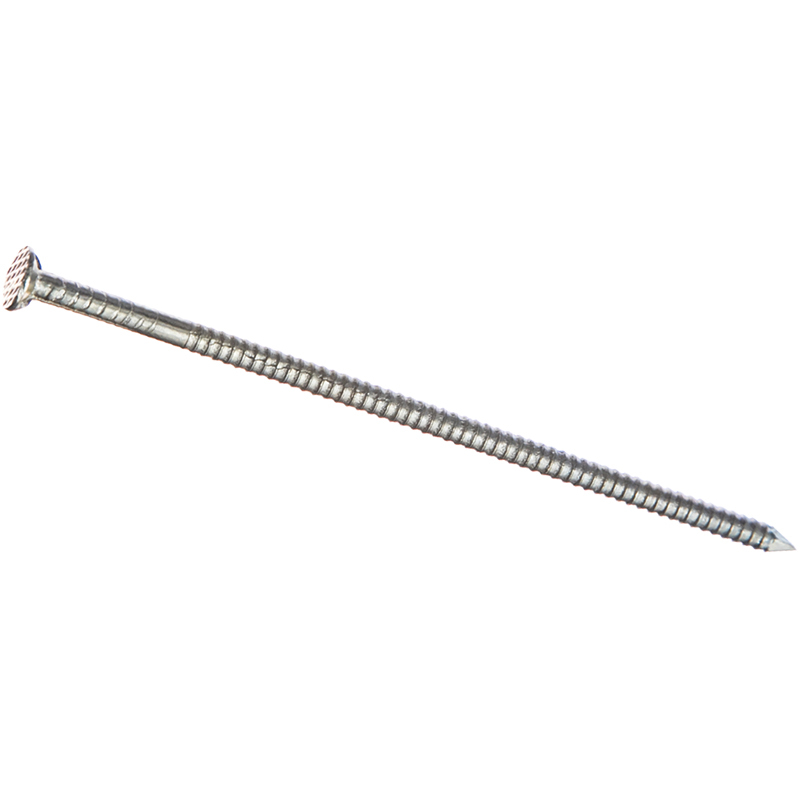 Гвозди ершеные – заостренные стержни из стальной проволоки. Имеют плоскую шляпку, которая забивается вровень с поверхностью. Защищаются от коррозии цинкованием, благодаря чему могут применяться в помещениях с повышенной влажностью или для наружных работ. Крепежное изделие отличается от других видов рифлением, нанесенным вкруговую на стержень, то есть ершами. Из-за них гвоздь становится шероховатым и держится в основании лучше, выдерживает большую нагрузку на вырывание.