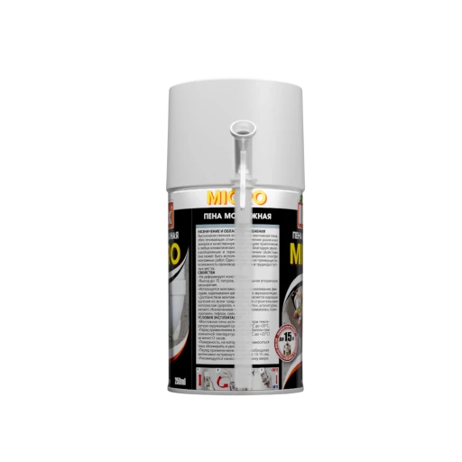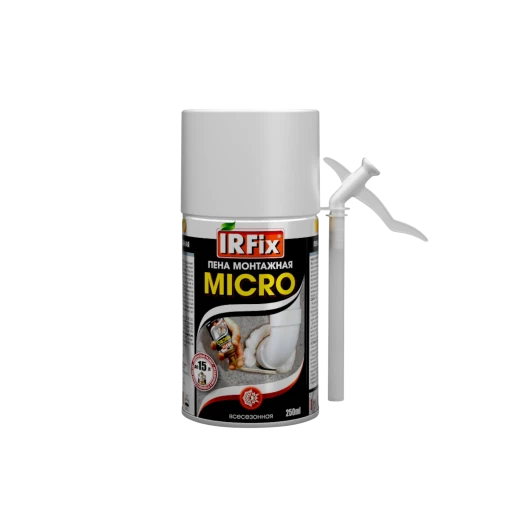 Высококачественная однокомпонентная полиуретановая монтажная пена всесезонного применения IRFix MICRO в аэрозольной упаковке 250мл с трубкой-адаптером. Отлично подойдет для мелкого ремонта. Использование монтажного пистолета не требуется.