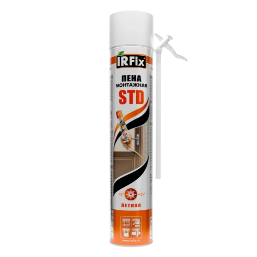 Высококачественная однокомпонентная полиуретановая монтажная пена летнего применения IRFix STD лето в аэрозольной упаковке 750мл с трубкой-адаптером. Использование монтажного пистолета не требуется.