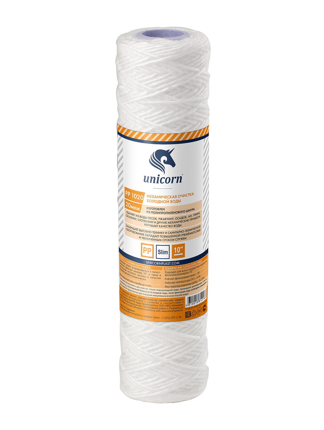Картридж механический из полипропиленового шнура 10" 20 микрон РР 1020