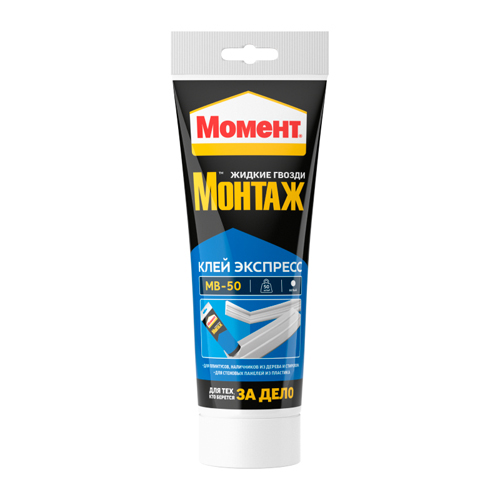 Момент Монтаж Экспресс МВ-50 - монтажный клей для приклеивания плинтусов и декоративных фризов, изоляционных панелей, профилей и пр. Быстрое и прочное крепление. Первоначальная сила склеивания - 50кг/м. Открытое время 15 минут. Экологически чистый, без запаха. Возможность окрашивания. Клей разработан специально для склеивания широкого спектра конструкций внутри помещения. Обеспечивает быстрое и надежное соединение таких материалов, как стиропор, дерево, металл, ПВХ, керамика, ДСП, МДФ, гипсокартон, пробка, полистирол, пенопласт, гипс и другие подобные материалы.