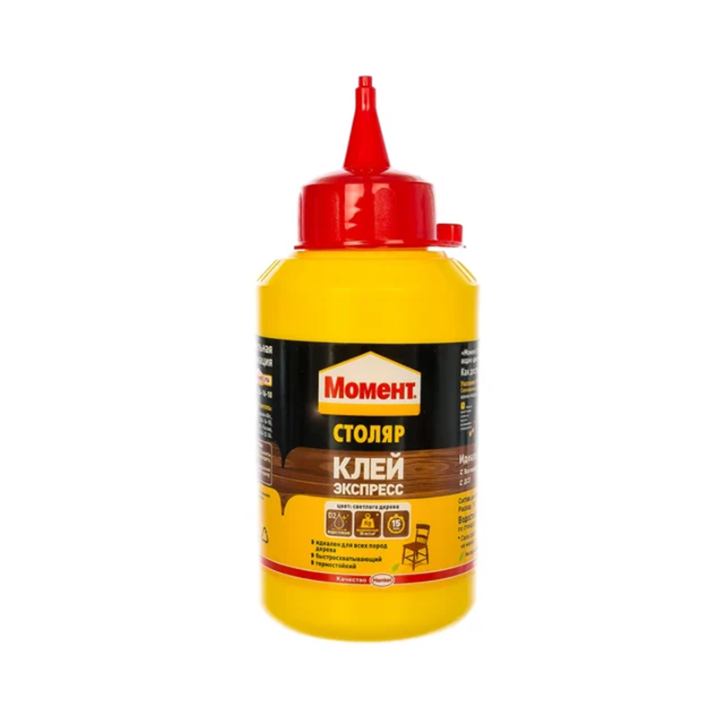 Клей СТОЛЯР Момент 422981 предназначен для различных пород дерева. С его помощью склеивают ДСП, фанеру, шпон, ламинат, картон, фурнитуру, ткань, кожу, некоторые пластики. Шов получается высокопрочный и устойчивый к кратковременному воздействию воды (водостойкость D2). Используют, например, при сборке и ремонте мебели. Такой клей хранят при температуре от +5ºС до +30ºС, нужно беречь от мороза.