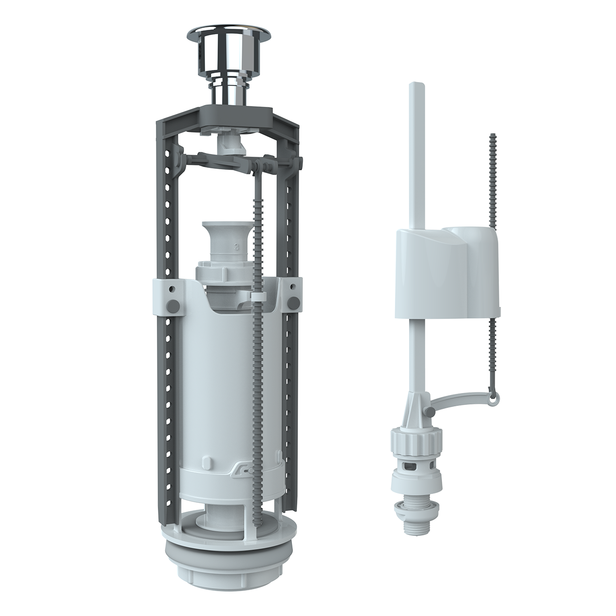 Комплект арматуры клапан спускной и наполнительный с нижней подводкой (кнопка хром) SM-N/H