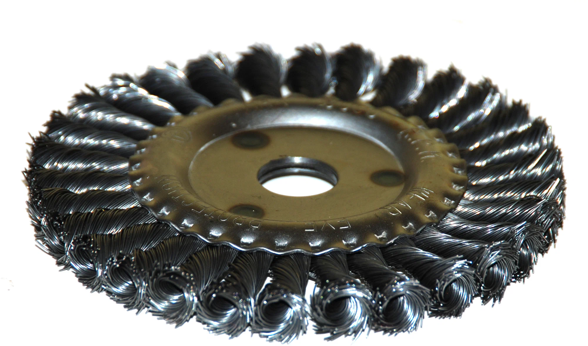 Корд-щетки «РОСОМАХА» используется для шлифовальных и обдирочных работ. Идеальны для удаления застарелых лакокрасочных покрытий, въевшейся грязи, ржавчины, окалины с поверхностей стальных изделий. Рабочая поверхность щетки — витая стальная проволока.