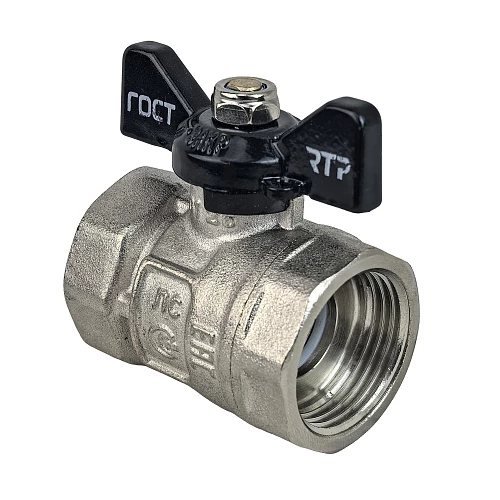 Кран шаровой ГОСТ ручка бабочка, латунь, внутренняя/внутренняя резьба 3/4",PN40 никель, RTP (49305)