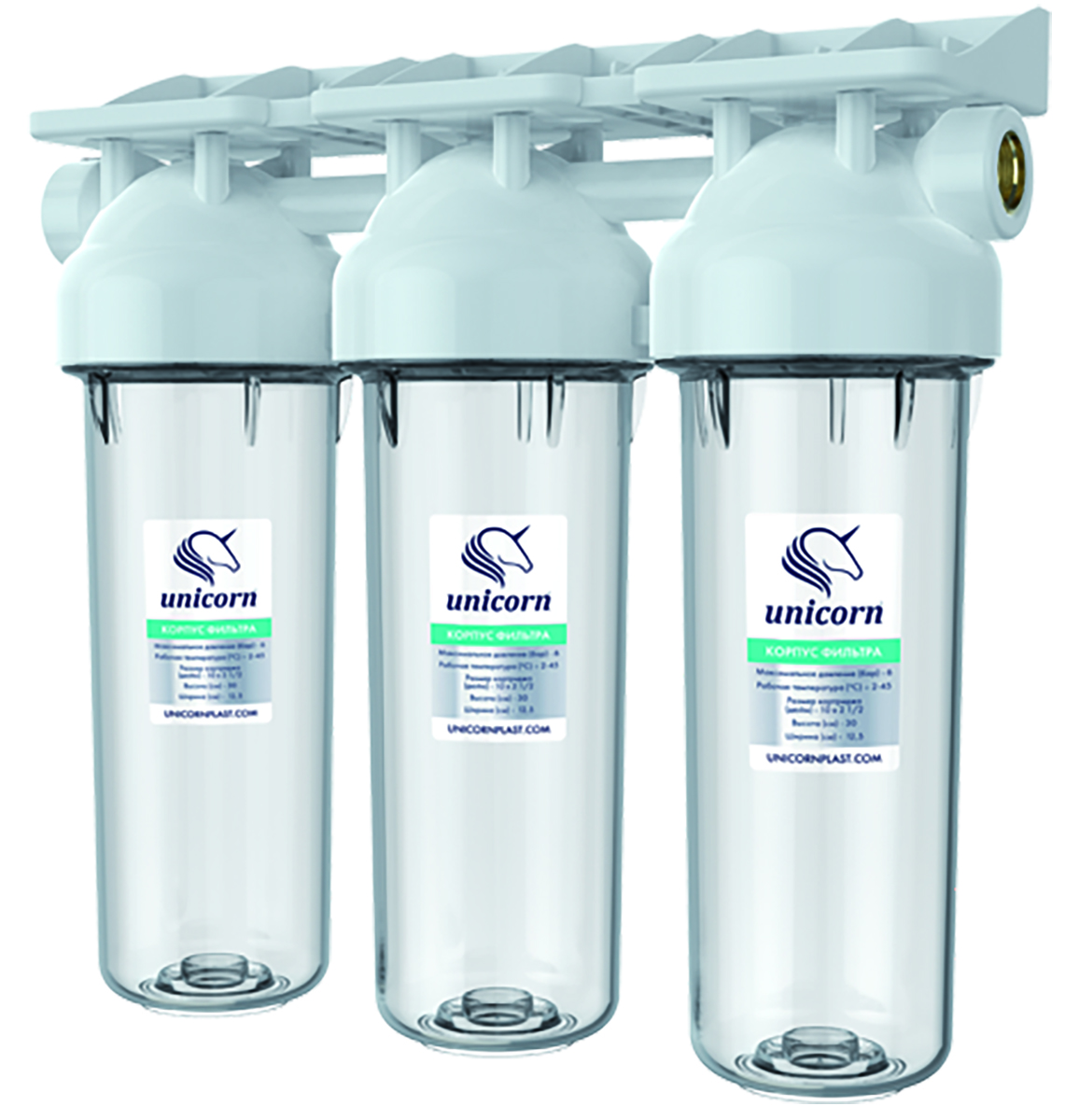 KSBP 3/4 TRIO Магистральный фильтр 10", тройной прозр. корпус, 3/4"