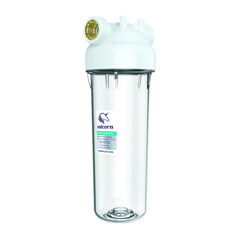 Корпус магистрального фильтра KSBP 10” используется только для холодной воды.Эффект очистки воды зависит от используемого картриджа (механическая очистка, угольная очистка, ионообменная очистка). Корпус-фильтр используется для защиты труб, сантехники и бытовой техники, имеющей контакт с водой. Корпус встраивается в магистраль холодного водоснабжения. Может использоваться как для бытовых (квартиры, дома) нужд, так и для коммерческих (кафе, офисы, малые предприятия). Прозрачный корпус позволяет наблюдать за процессом фильтрации и визуально оценивать степень загрязнения сменного картриджа. Предполагает установку стандартных картриджей типоразмера 10” SL (Slim line) из полипропиленового волокна, полипропиленового шнура, а также различных сменных картриджей угольной и ионообменной очистки.