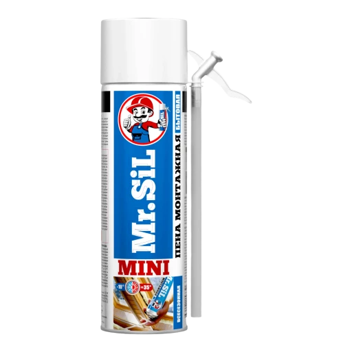 Однокомпонентная полиуретановая монтажная пена всесезонного применения Mr.Sil в аэрозольной упаковке с трубкой-адаптером. Использование монтажного пистолета не требуется.