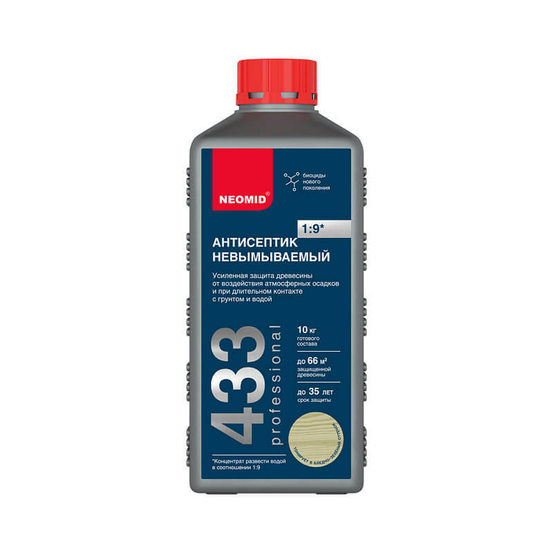 NEOMID Антисептик Невымываемый Усиленный совместим с составами на алкидной, алкидно–уретановой и акриловой основе, такими как Неомид Bio Color Aqua, Неомид Bio Color Classic, Неомид Bio Color Ultra.
