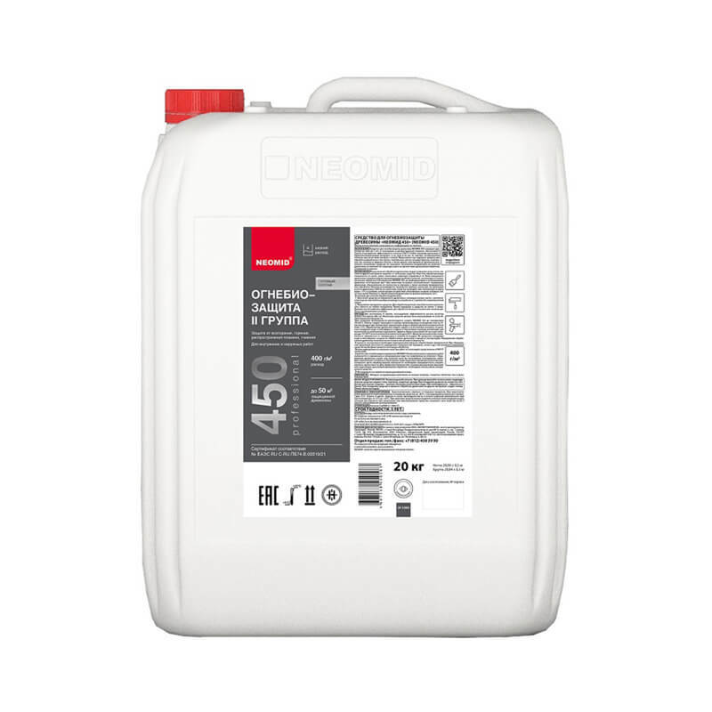 NEOMID 450 защищает древесину на срок до 7 лет от возгорания и распространения пламени, обеспечивая II группу огнезащитной эффективности согласно ГОСТ Р 53292 (переводя древесину в трудновоспламеняемый материал), и на срок 8-10 лет от гниения, возникновения плесени, при отсутствии контакта с влагой. Применяется как защитная пропитка для обработки деревянных стен, балок, стропильных систем, несущих брусьев, перекрытий, лаг, оконных и дверных блоков, а также других конструкций из древесины различного назначения.
