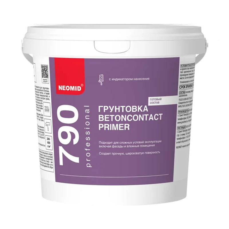 Грунт NEOMID БетонContact Primer 6 кг Н-Г/БетонPri-6 адгезионный создает прочную шероховатую поверхность с высокой адгезией к штукатурным, шпаклевочным, клеевым смесям и финишным лакокрасочным и структурным покрытиям.
