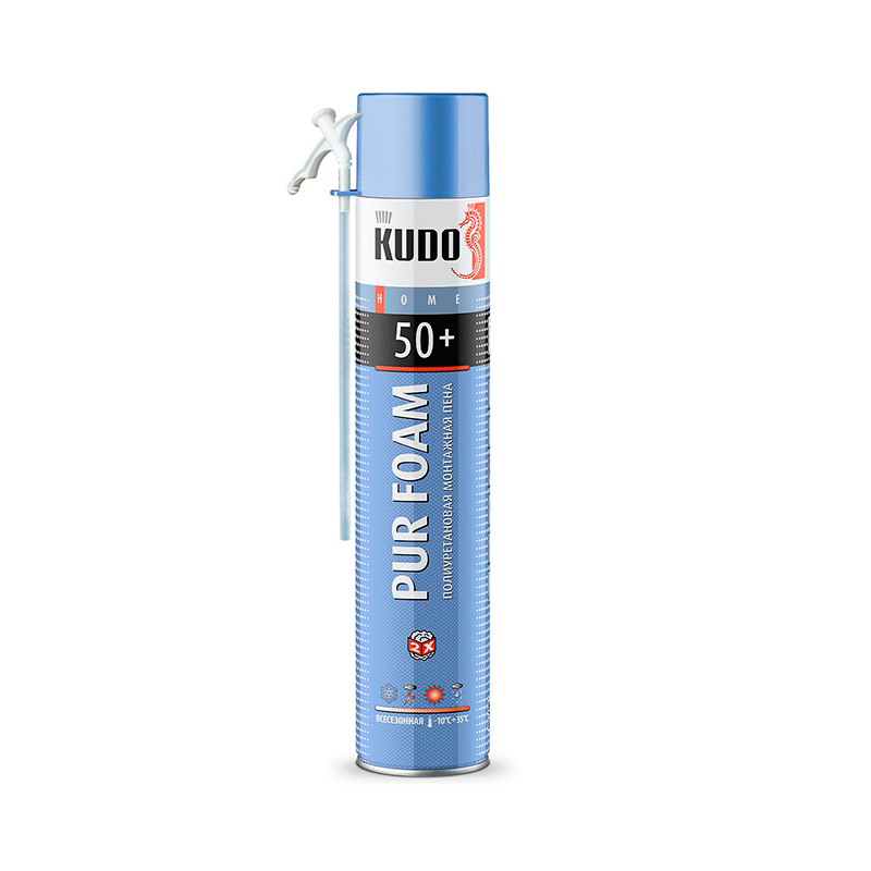 Высококачественная однокомпонентная полиуретановая всесезонная монтажная пена KUDO® HOME 50+ обладает высокой адгезией к большинству строительных материалов, таких как: бетон, кирпич, штукатурка, дерево, пластик, за исключением полиэтилена, полипропилена и фторопласта.