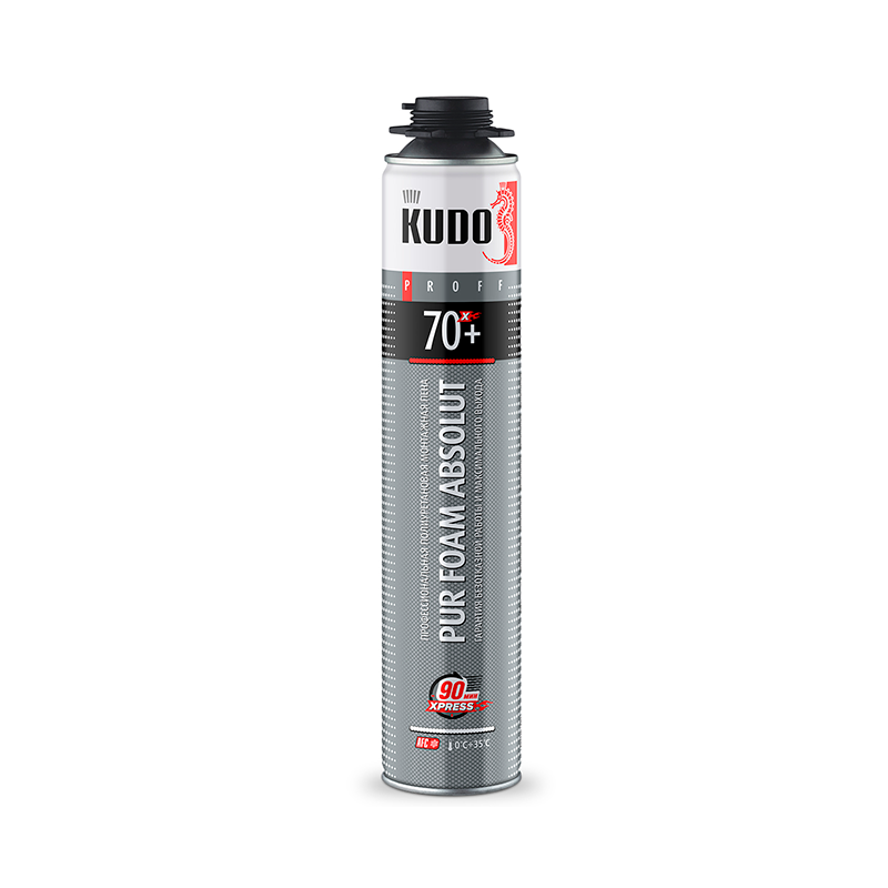 Высококачественная однокомпонентная полиуретановая монтажная пена KUDO® PROFF ABSOLUT 70+ XPRESS обладает высокой адгезией к большинству строительных материалов, таких как: бетон, кирпич, штукатурка, дерево, пластик, за исключением полиэтилена, полипропилена и фторопласта.