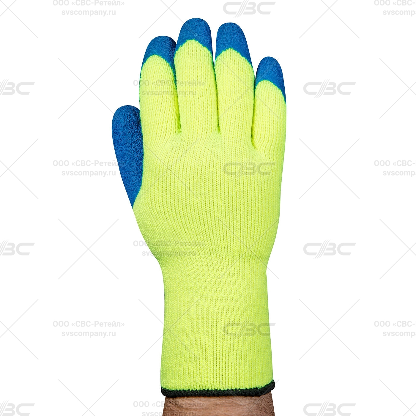 Перчатки зим. с рельеф. покрыт. из натур. латекса 7 кл вязки лимон р. 10