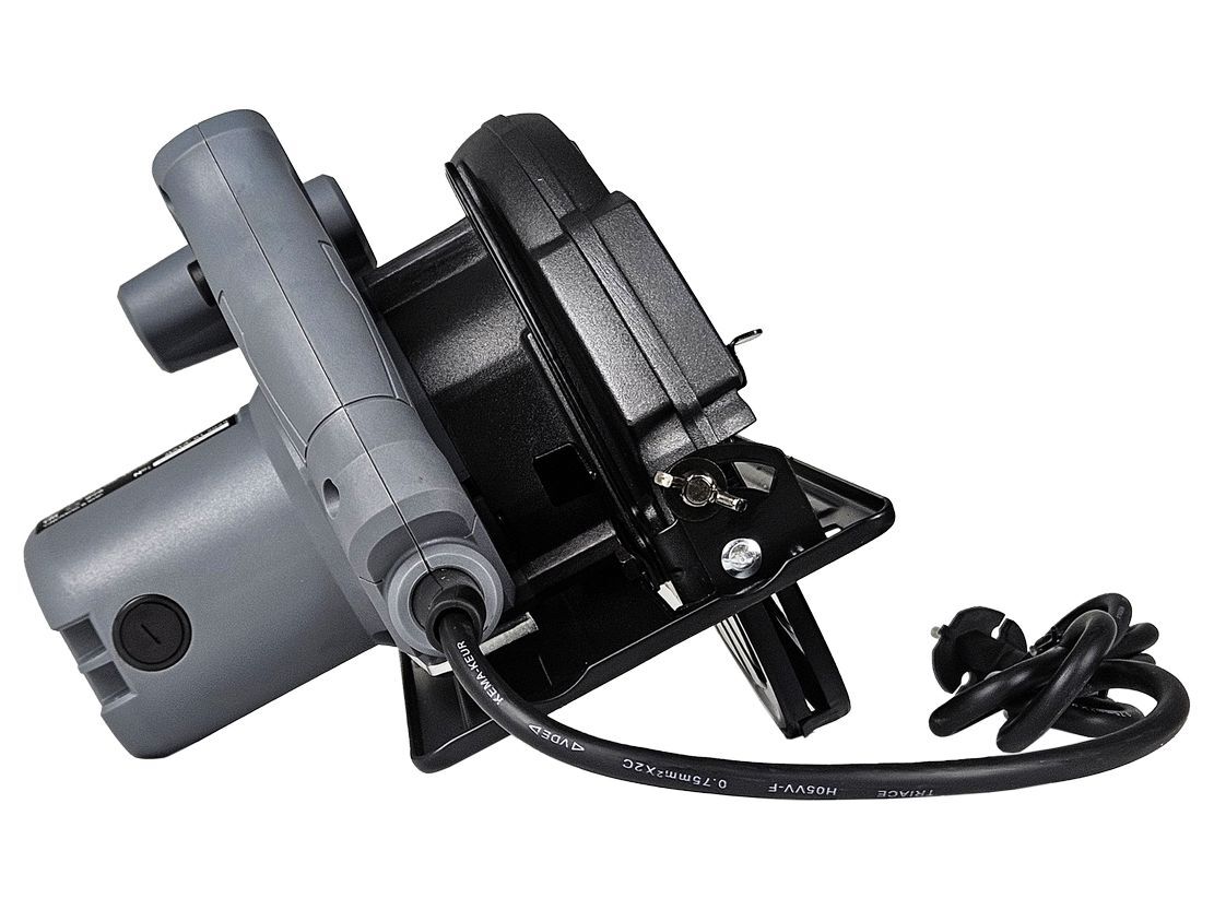 Стальное основание с фиксацией под углом позволяет выполнять ровные наклонные пропилы. Выключатель с безопасной фиксацией в одно нажатие отключит инструмент при необходимости.