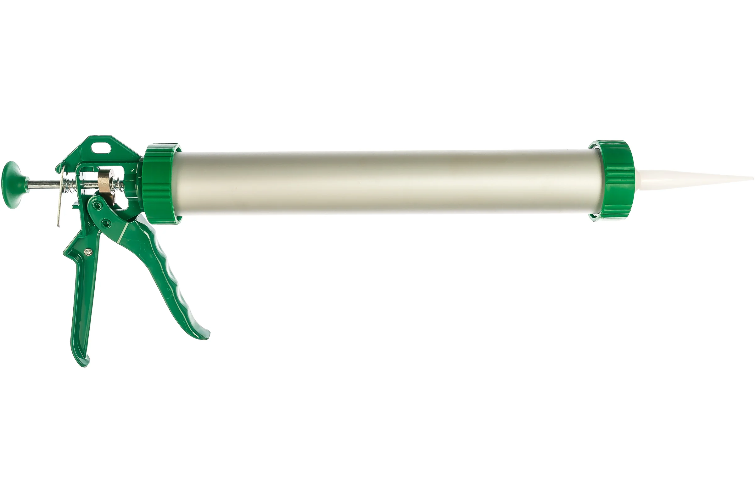 Закрытый пистолет для туб РОСОМАХА алюминиевый корпус, 600мл. подходит для работы с герметиками без упаковки. Применяется для удобного нанесения герметика при выполнении монтажных и строительных работ.