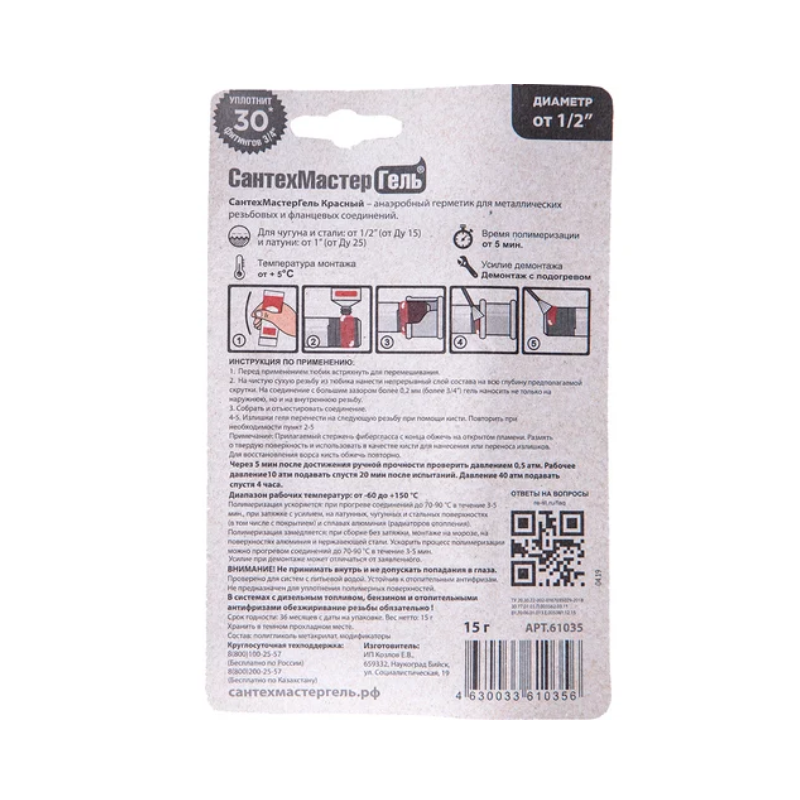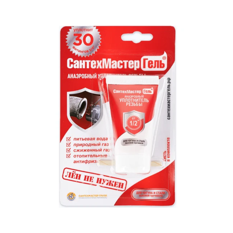 Этот гель отлично подходит для сверхпрочной фиксации и герметизации резьбы и фитингов в трубопроводах, собранных с использованием черных металлов. Применяется для соединений диаметром от 1".