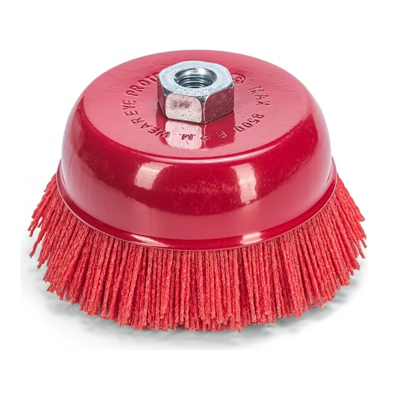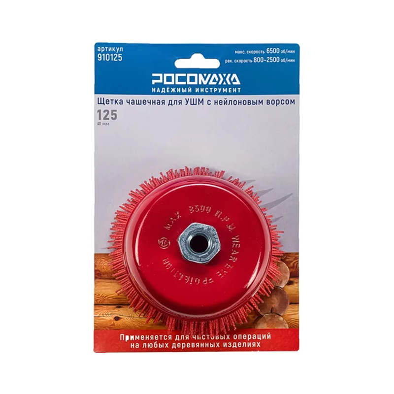 Щетка чашечная с нейлоновым ворсом «РОСОМАХА» применяется для чистовых операций на любых деревянных изделиях, а также для выделения красивой текстуры дерева, браширования и чистовой шлифовкой сруба, стен из бревна, бруса и имитации. Такой щеткой удобно обрабатывать вертикальные деревянные поверхности из круглого бревна, бруса, доски, вагонки, а также стыки углов, стен и конструкций.