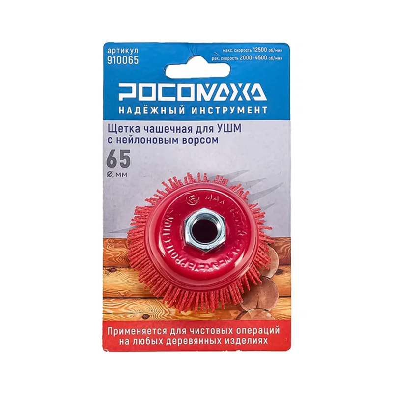 Щетка чашечная для УШМ с нейлоновым ворсом 65 мм "РОСОМАХА" (910065)