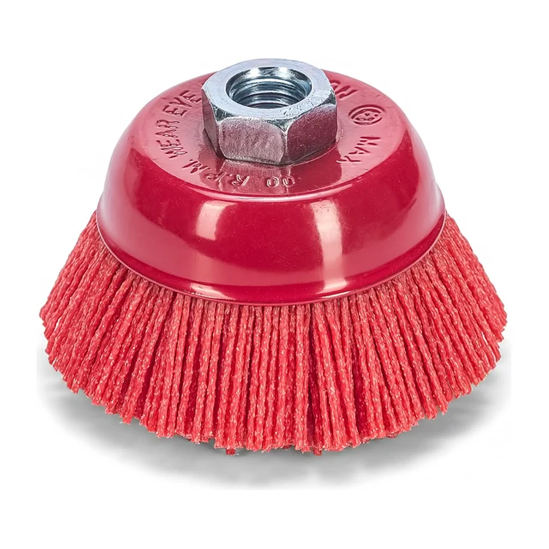Щетка чашечная с нейлоновым ворсом «РОСОМАХА» применяется для чистовых операций на любых деревянных изделиях, а также для выделения красивой текстуры дерева, браширования и чистовой шлифовкой сруба, стен из бревна, бруса и имитации. Такой щеткой удобно обрабатывать вертикальные деревянные поверхности из круглого бревна, бруса, доски, вагонки, а также стыки углов, стен и конструкций.