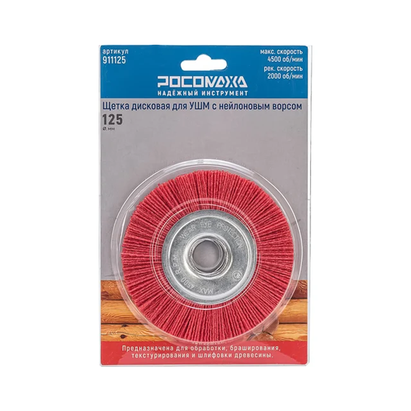 Щетка чашечная с нейлоновым ворсом «РОСОМАХА» применяется для чистовых операций на любых деревянных изделиях, а также для выделения красивой текстуры дерева, браширования и чистовой шлифовкой сруба, стен из бревна, бруса и имитации. Такой щеткой удобно обрабатывать вертикальные деревянные поверхности из круглого бревна, бруса, доски, вагонки, а также стыки углов, стен и конструкций. Применяется на УПМ (угловая полировальная машина) и УШМ (болгарка) с регулятором оборотов.