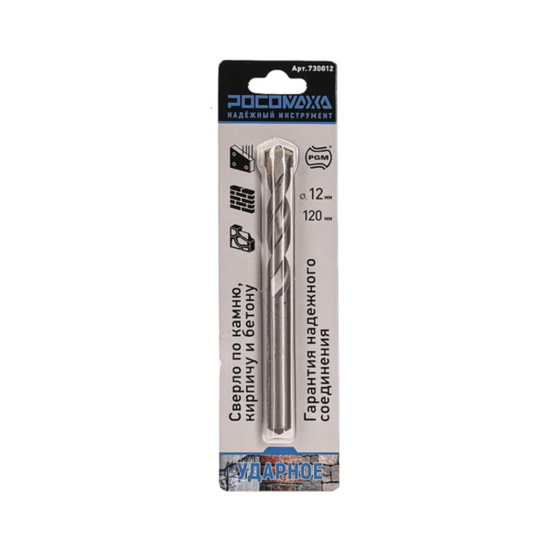 Ударное сверло по камню, кирпичу и бетону 12*120 мм "РОСОМАХА" (730012)