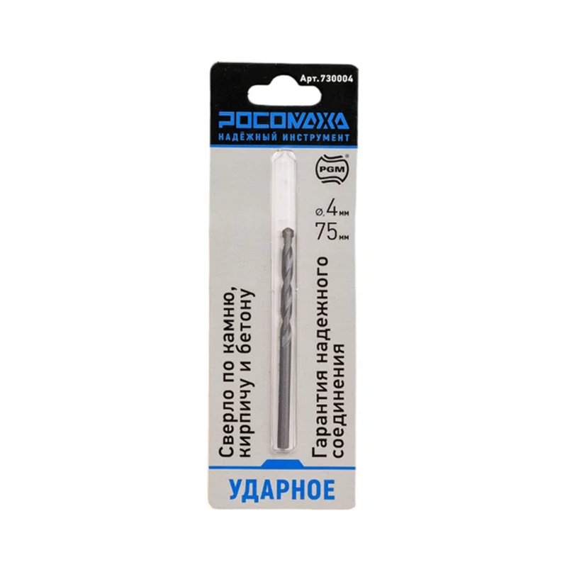 Ударное сверло по камню, кирпичу и бетону 4*75мм "РОСОМАХА" (730004)
